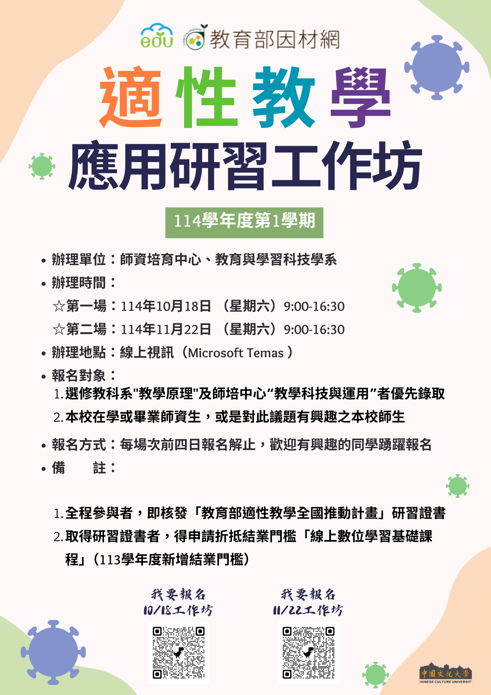 114學年度第1學期教育部因材網「適性教學應用研習線上工作坊」即日起開放報名。